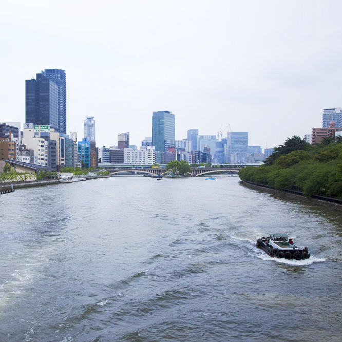 東横堀川は、豊臣期大坂城を囲む惣構そうがまえの西側の備えとして、天正13年(1585)に掘削くっさくされました。 広大な豊臣期大坂城の規模をしのぶことができる貴重な遺構いこうですが、現在は川の上に阪神高速道路が通っています。